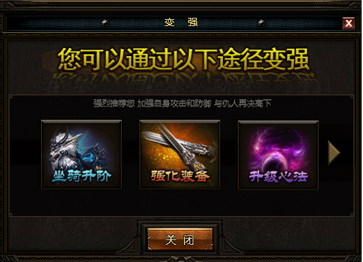 玩家可以通过我要变强,学习心法,增加技能,提高战力。