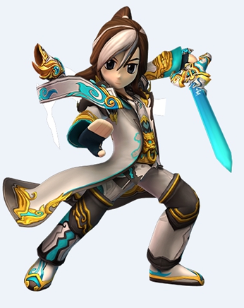 剑士这个职业来源于漫画书的另一个主人公——谭花磷。她是热血江湖传的女一号,身为天下五绝之一剑皇的孙女,她身怀剑皇所创的长白剑法,继承了剑皇的信物 ——能够破除一切邪恶污秽之物的伏魔花灵剑。为了寻找下落不明的爷爷而离开了长白山的剑庐,踏入了陌生的江湖,试图查明事情的真相,结果在路上偶遇正在四 处闲逛的韩飞官……
