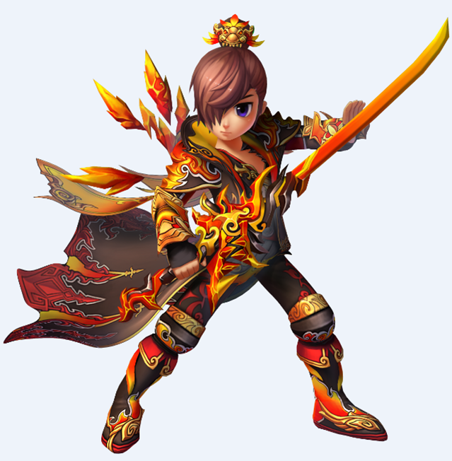 剑士这个职业来源于漫画书的另一个主人公——谭花磷。她是热血江湖的女一号,身为天下五绝之一剑皇的孙女,她身怀剑皇所创的长白剑法,继承了剑皇的信物——能够破除一切邪恶污秽之物的伏魔花灵剑。为了寻找下落不明的爷爷而离开了长白山的剑庐,踏入了陌生的江湖,试图查明事情的真相,结果在路上偶遇正在四处闲逛的韩飞官……