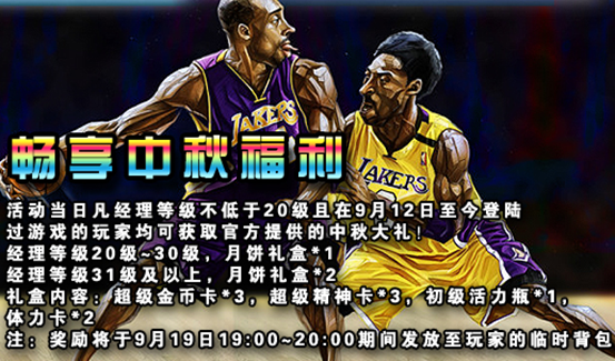活动内容:活动当日凡经理等级不低于20级且在9月12日至今登陆过游戏的玩家均可获取官方提供的中秋大礼!