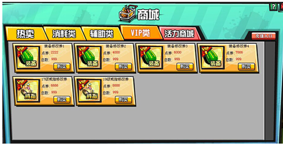 活动期间商城VIP出售各种豪华超给力道具,价格低到想不到,数量有限,欲购从速。