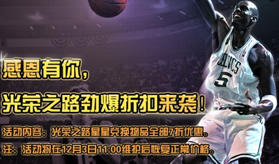 活动内容:光荣之路星星兑换物品全部7折优惠。活动将在12月3日11:00维护后恢复正常价格。