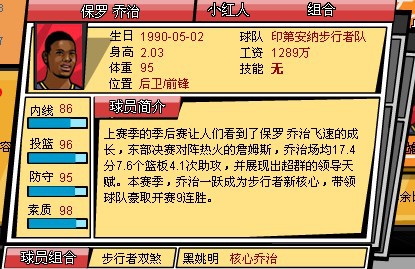 球员:核心乔治+黑姚明 乔治中投属性+15%,希伯特篮板属性+15%