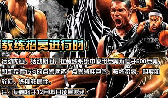 活动内容:活动期间,在教练系统中使用点券不低于500点券,即可获得15%的点券返还!