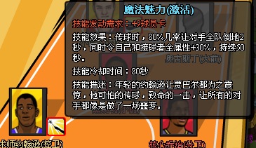传球时,80%几率让对手全队倒地2秒,同时令自己和接球者全属性+30%,持续50秒。