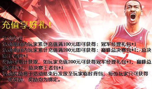 活动期间内玩家累计充值满100元即可获得:冠军经理礼包*1