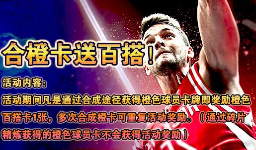 活动期间凡是通过合成途径获得橙色球员卡牌即奖励橙色百搭卡1张,多次合成橙卡可重复活动奖励。(通过碎片精炼获得的橙色球员卡不会获得活动奖励)