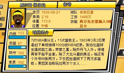 对张伯伦的各项数值进行调整,凸显出他超强的运动力和得分能力(除三分以外)。