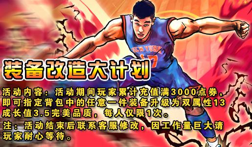 活动内容:活动期间玩家累计充值满3000点券,即可指定背包中的任意一件装备升级为双属性13成长值3.5完美品质,每人仅限1次。