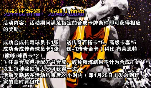 成功合成传奇球员卡5张 送+1传奇金卡(科比布莱恩特(巅峰)球员卡+1*2)