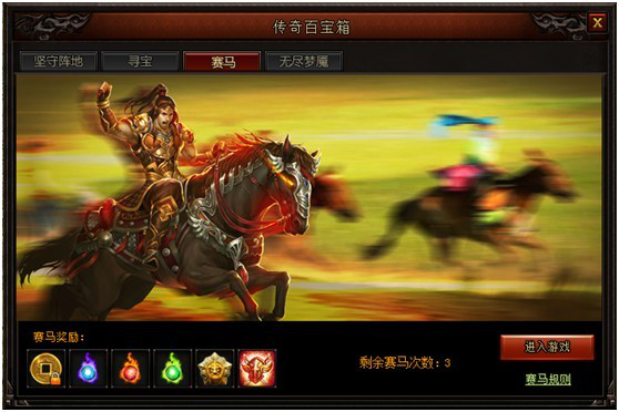 四、传奇百宝箱新增游戏:“赛马”,玩家可通过比赛来获得奖励,名次越高奖励越丰厚,但要小心地图中的“地雷”哦。