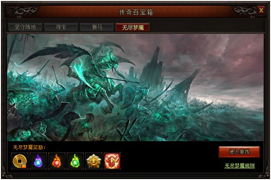 五、传奇百宝箱新增游戏:“无尽梦靥”,玩家需要在规定的时间内,击杀大量波数的怪物,赢取丰厚奖励。