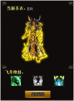 二、 飞升等级上限提升至50级,除将会激活5阶圣衣外,还将解锁全新的飞升技能。