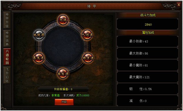 1)神甲和法宝升到10阶10级后,玩家将无需再为幻化丹而发愁,全新开启的六道轮回功能,将弥补没有幻化丹而出现的差距。
