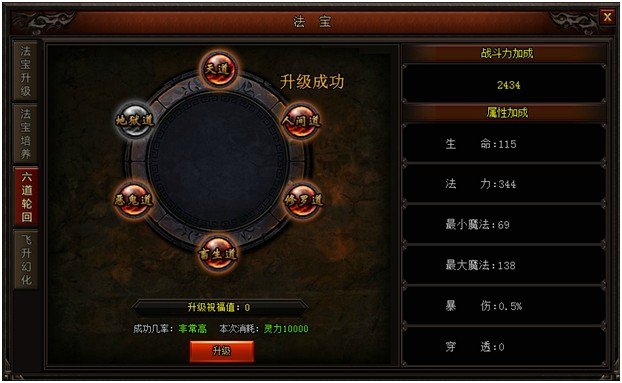 2)六道将会分别增加额外的属性,六道的重数越高,加成属性越惊人。