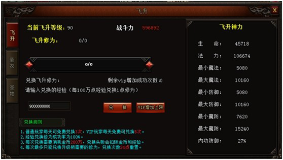 飞升经验兑换修为成功率进行调整,成功率为100%!