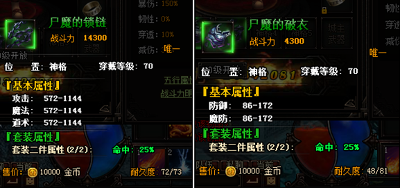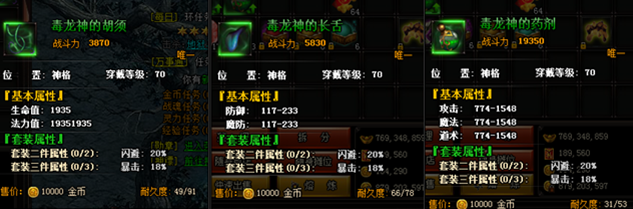 五、新增4套神格套装,分别是尸魔套装、毒龙神套装、屠龙五行套装、倚天五行套装。
