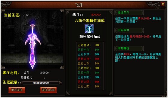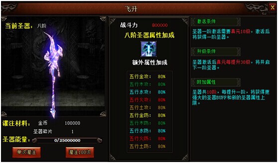 只要玩家达到指定等级将可以激活更加强大的圣器。