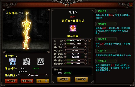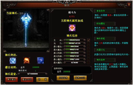 二、五阶神兵出世,能力全面进化!不仅外形更酷,而且属性超群。此外,新神兵技能也已开启,战、法、道都将拥有一个全新的超强技能。