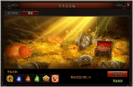 1)玩家通过传奇百宝箱面板选择开始寻宝,根据系统提示坐标即可找到对应宝藏。