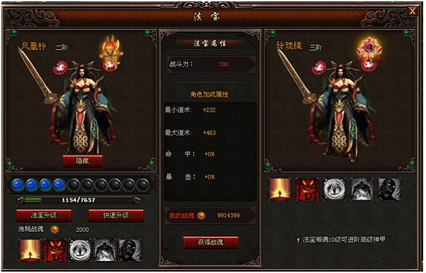 法宝提升需要战魂,战魂可以通过挑战战魂魔舰免费获取