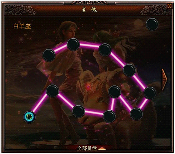 星魂背景星图,由黄道12星宫演变,共12副星图,即白羊宫、金牛宫、双子宫、巨蟹宫、狮子宫、室女宫、天秤宫、天蝎宫、人马宫、摩羯宫、宝瓶宫和双鱼宫。