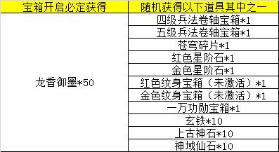 上古魂魄瓶(限时)*20、大经验宝箱*2、105套装卷轴箱*1 |