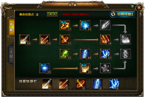第二套技能玩家可以从新加点,重新设置技能快捷键;