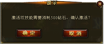 开启“双技能”会消耗一定钻石,并会出现提示窗口,提示玩家是否激活;