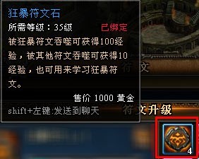专用符文石:图标与该符文一致,专用符文可以用来升级符文经验,被相同符文吞噬可获得100的经验,被其他符文吞噬只能获得10点经验。且只有“专用符文”才能“学习”激活新符文。
