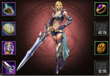 在游戏中的装备分为头饰、项链、衣服、武器、戒指、首饰6类,角色身上可佩戴共计8件装备。