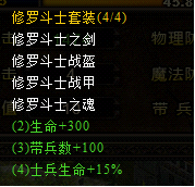 当角色装备齐全一套完整的套装时,除了装备本身的属性外,还可获得额外的属性加成。