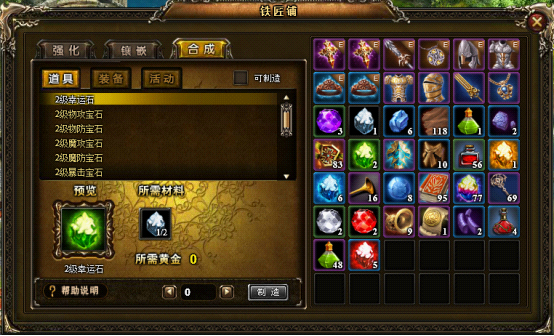 装备不给力?运气不好,总是得不到极品装备?铁匠铺系统就是你的福音了,在这里玩家可以大幅度的提升装备的属性。