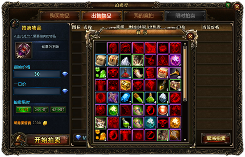 玩家通过拍卖行可出售自己背包内未绑定的物品;