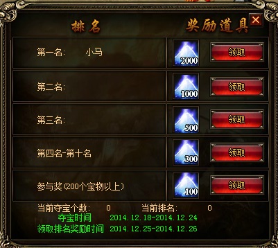 注意:如遇合服,则合服后玩家需要变动夺宝数量后才能上榜。