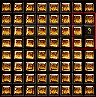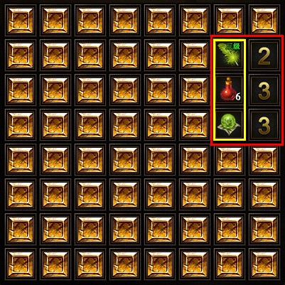 3. 点击格子后,若格子显示为道具,则立刻获得此奖励,奖励将自动放入“寻宝仓库”中;若格子显示为数字X,则表明距离此格子最近的所有格子中共有X个宝物,需要玩家自行寻找。