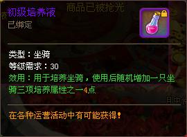【规则】玩家可花费8元宝购入原价15元宝/每瓶的【初级坐骑培养液】。