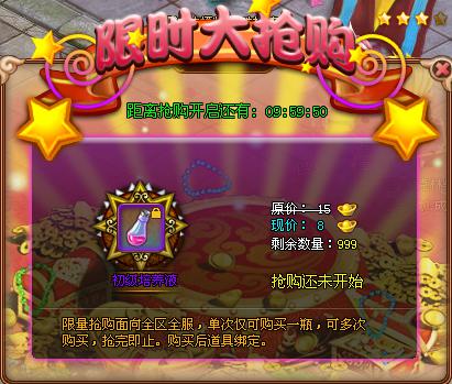 3.全区全服限量999瓶,不限购买量,在活动时间内,售完为止!未售完的物品,将在活动时间过后下架。