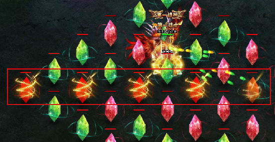 2) 用鼠标点击神石,可使神石的颜色发生变化,将5个相同颜色的神石排在一条直线上时,这5个神石会自动消除来获得相应的积分,这里要注意,直线可以是任意方向,横着、竖着、斜着都可以