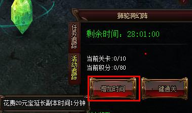 4) 如果觉得副本时间太少,可以花费少量元宝增加副本时间