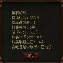5) 当副本的时间用尽而结束时,会有一定几率刷出“神石吞吐怪”,消失它后会获得丰富的奖励