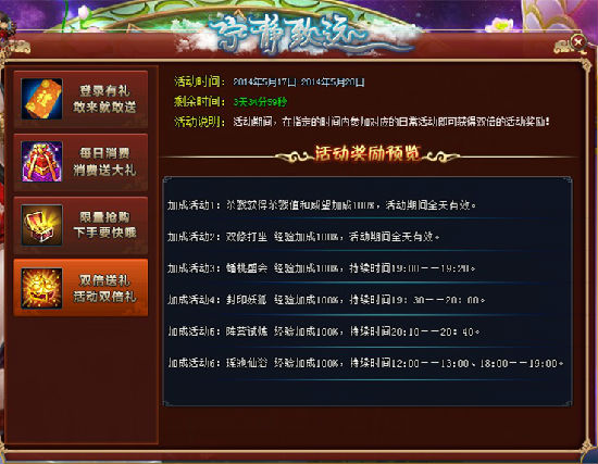 【活动说明】:活动期间,在指定的时间内参加对应的日常活动即可获得双倍的活动奖励。