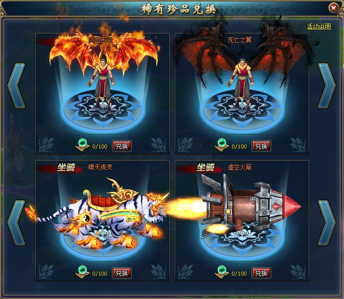 【活动内容】:活动期间,各种珍品道具随你兑换!