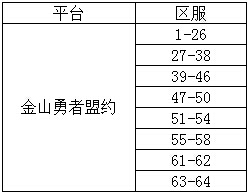 大家好!为了给每一个喜爱《勇者盟约》的玩家提供更好更全面的游戏体验,享受到更多游戏的乐趣和挑战及结识更多的志同道合的朋友,《勇者盟约》顺应广大玩家的需求,开放“合服”功能。我们计划在2016年7月13日10:00-12:00对以下区服进行合区工作。服务器会根据维护操作完成时间提前或者延迟开启,请玩家密切留意官网消息,不便之处敬请体谅!