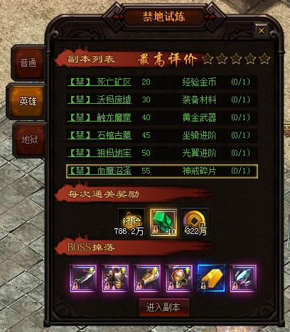 更新后,禁地试练将增加“英雄”、“地狱”两个难度的挑战~英雄难度的奖励是普通难度的2倍,地狱难度的奖励是普通难度的3倍!强者,迎接挑战吧!