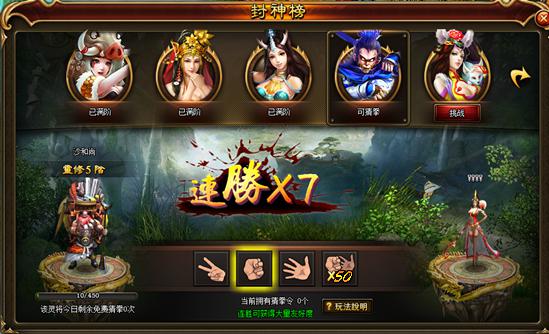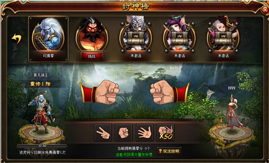 玩家可通过猜拳对任意一个已获得的灵将进行培养升阶;