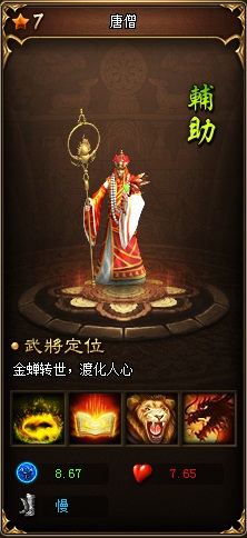 福泽众生(被动):战斗开始前按比例提升全军伤害率和免伤率,不占用出手回合。