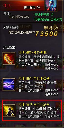 精卫天赋卡+玉兔天赋卡+九头鸟天赋卡可激活枯木逢春组合