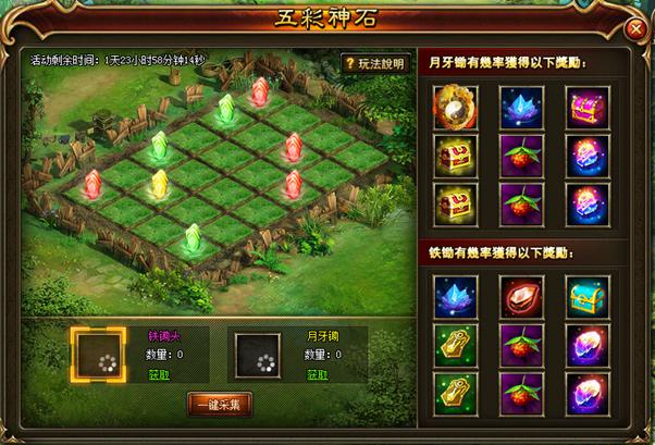每次采集神石需消耗一定数量道具,使用月牙锄头采集可获得丰厚的奖励。