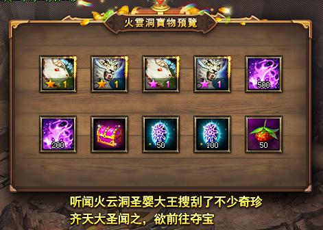 活动说明:活动期间内,主角等级达到80级的玩家可在商城购买火云洞夺宝宝箱